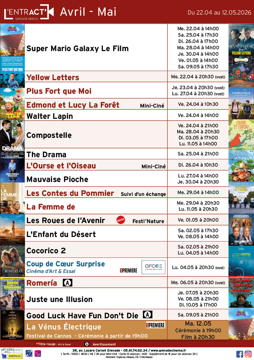 Pour toute demande, n’hésitez pas à nous contacter à scolaire@grenadecinema.fr